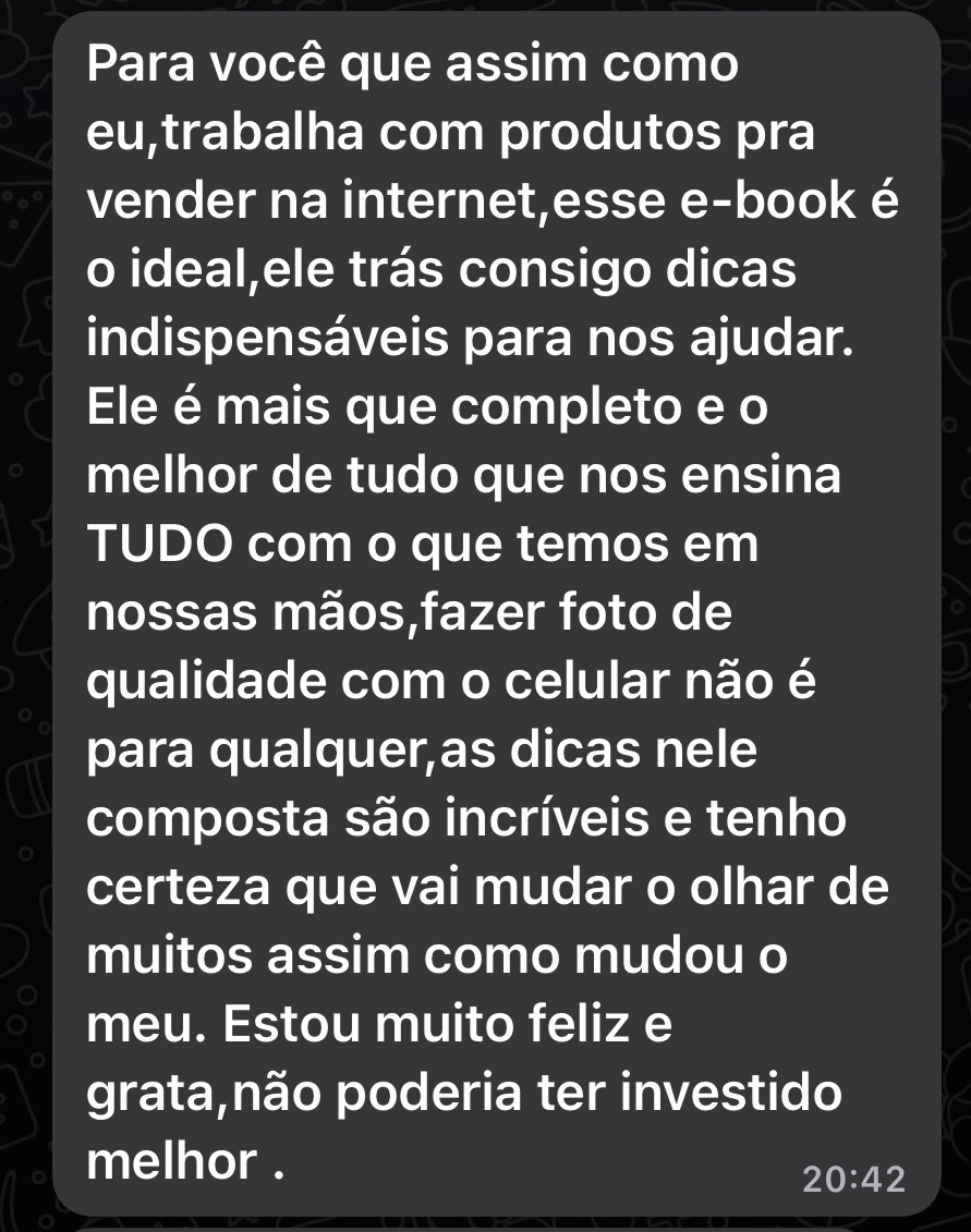 Aqui você não encontra somente um guia de como fotografar, mas toda a estratégia de como vender nas redes sociais.