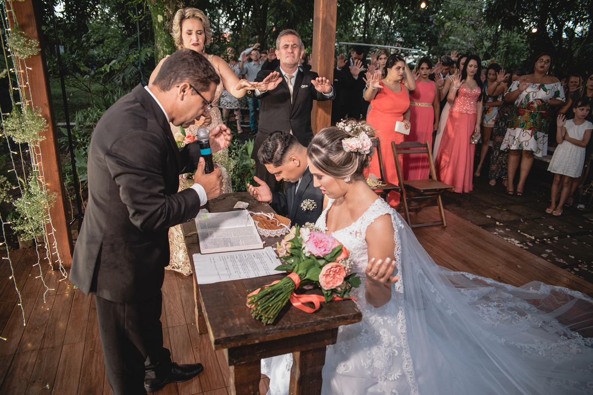 Começamos o dia do casamento com frio na barriga, um casamento planejado todo ao ar livre e sabe o que aconteceu? O dia estava chovendo muuuuuito. Mas sabemos, que tudo é feito conforme a vontade de Deus e uma união como essa não iria ser diferente. De baixo de muita oração o casamento aconteceu. Então para vocês entenderem e sentirem toda a emoção, veja as fotos e sinta todo o amor desse casal e a felicidade por estarem selando essa união em um casamento perfeito como eles sonharam.
