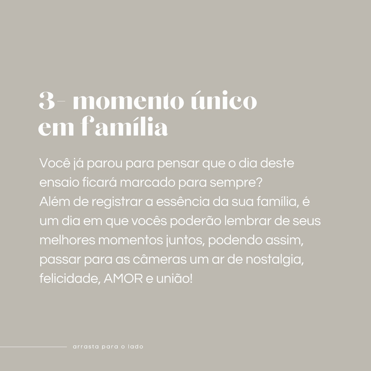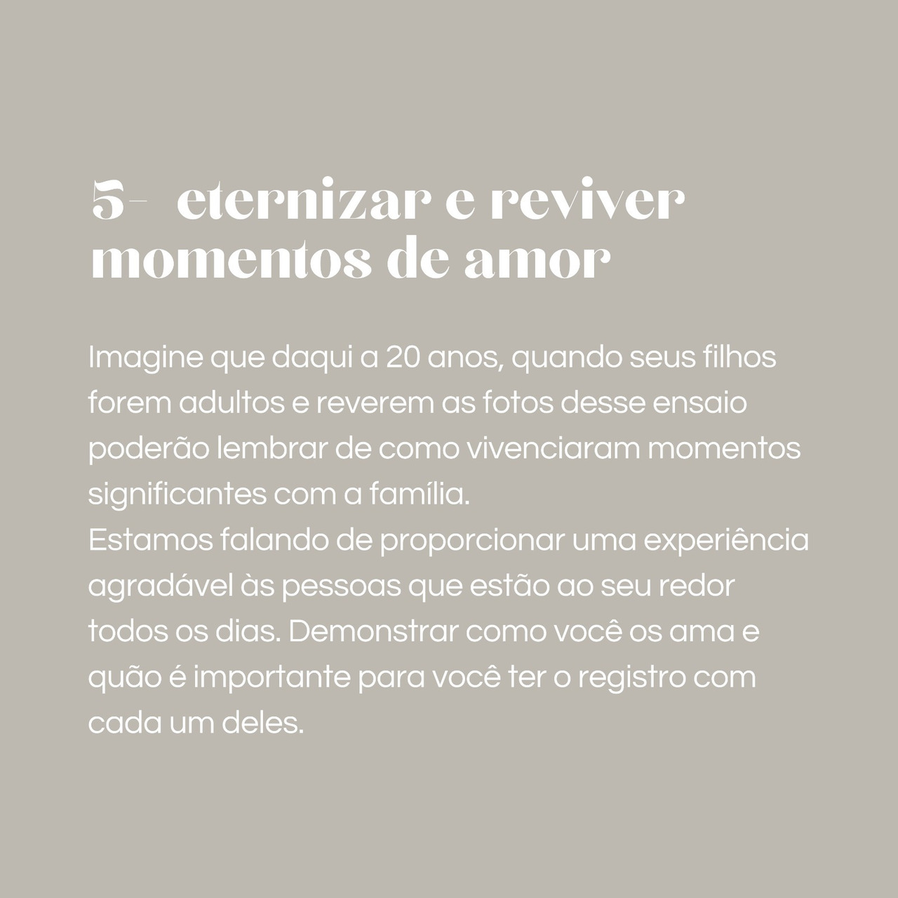 Além disso, fazer fotos com a família é uma oportunidade para unir e fortalecer os laços familiares. Ao compartilhar esses momentos juntos, você pode criar um senso de conexão e pertencimento, o que é importante para manter relações familiares saudáveis e positivas.